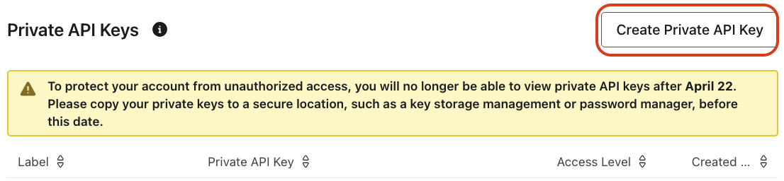 - Click Create Private API Key.