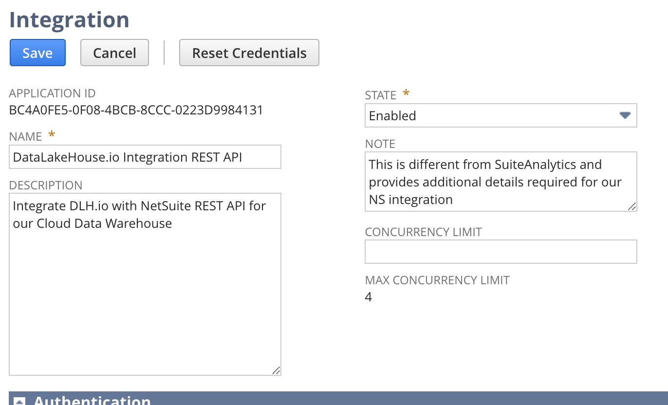 - Description = Integrate DLH.io with NetSuite REST API